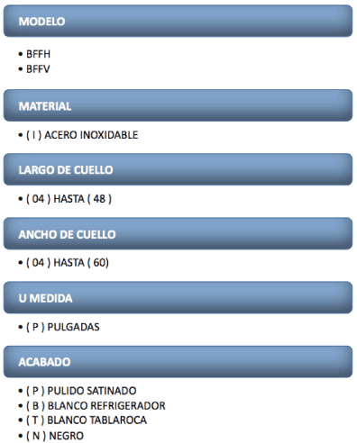 La rejilla de inyección de deflexión sencilla en acero inoxidable, será de marca Innes, modelo BFFH (aletas horizontales) y BFFV (aletas verticales). La rejilla tendrá aletas individualmente ajustables sobre 3/4 ". La construcción será de acero inoxidable 304 con bordes de 1-1/4 " por lado, con esquinas en escuadra. La rejilla estará disponible con agujeros de tornillo avellanados para un aspecto limpio y libre.