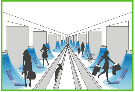 - Suministro de aire a baja velocidad horizontal a ras del suelo.