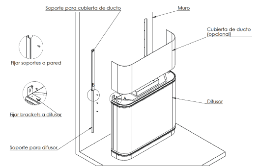 - Difusor de desplazamiento de aire horizontal a baja velocidad.
