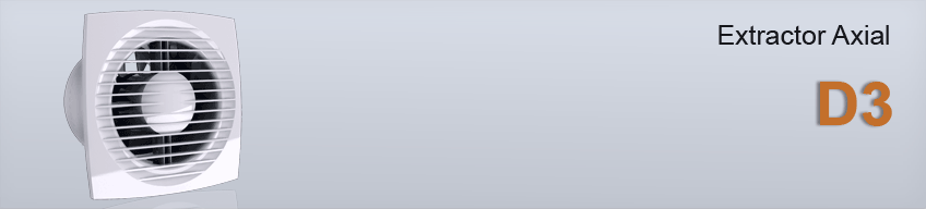 Su aplicación será para extracción en baños. Tendrán un impulsor de 7 hojas. Tendrán bajo nivel de ruido. Los extractores axiales D3 podrán instalarse en techos o muros y se podrán conectar a ductos de 100 mm, 125 mm ó 150 mm de diámetro. Incluirán una compuerta antiretorno y estarán construidos en plástico ABS color blanco. |