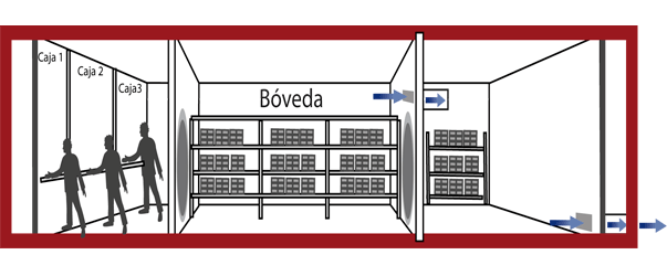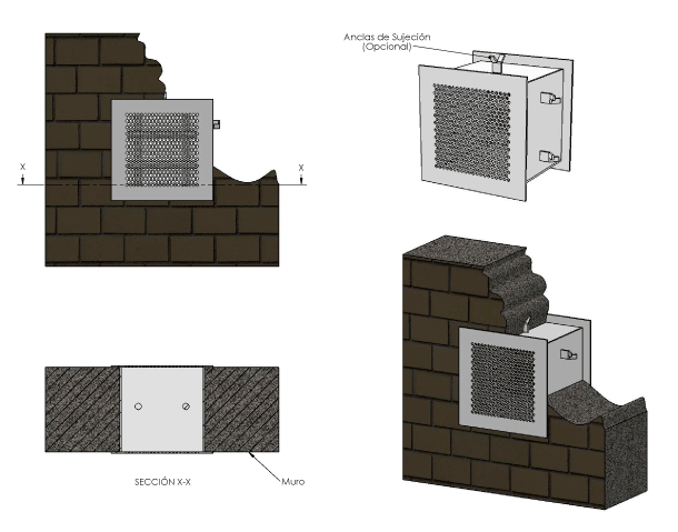 Las medidas podrán ser desde 6" x 4" hasta 30" x 30". Para máxima seguridad se añadirán los siguientes accesorios: barras de ¾" de acero ASTM templado de dureza B-90 Rockwell resistente a la abrasión y anclas para concreto de lámina de acero (3/16") o acero inoxidable 304 (calibre 10) soldadas a la manga.