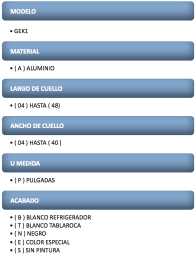 Las rejillas GEK1 estarán construidas en aluminio extruido con acabado en pintura electrostática en colores de línea: blanco, blanco tablaroca y negro mate.