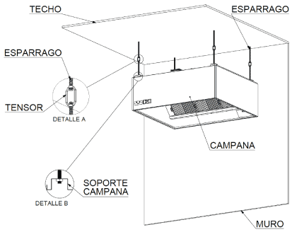 La campana será construida en acero inoxidable de calibre 18 en áreas expuestas.